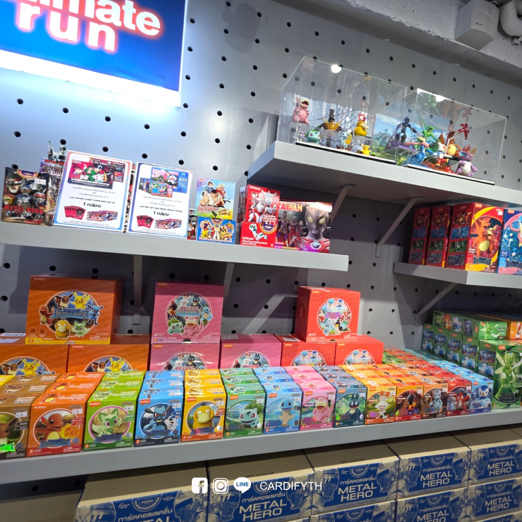 พบกับการ์ดหลากหลายแบรนด์ดังไม่ว่าจะเป็น Animate, One Piece, Pokemon, Vanguard, Battle of Talingchan, Digimon, Ultaman, และ Dragon Ball Z ที่คัดมาเพื่อนักสะสมตัวจริง และยังขนทัพ Blokees ทั้งไลน์อัพ Pokemon มาให้เลือกช้อปครบทุกตัวละครอีกด้วย